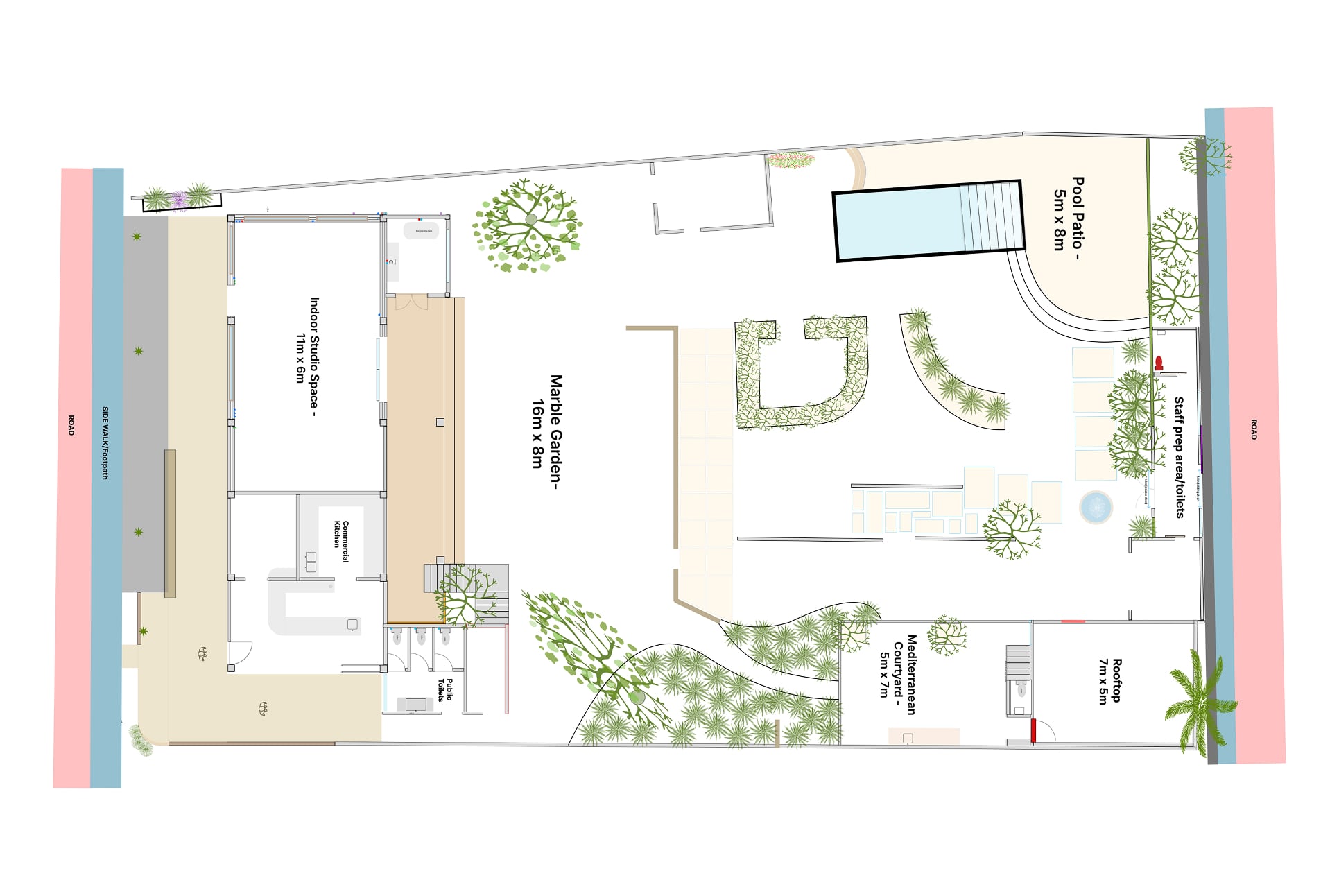Welcome to the med terrace, a diverse outdoor area with a variety of different spaces to shoot in.